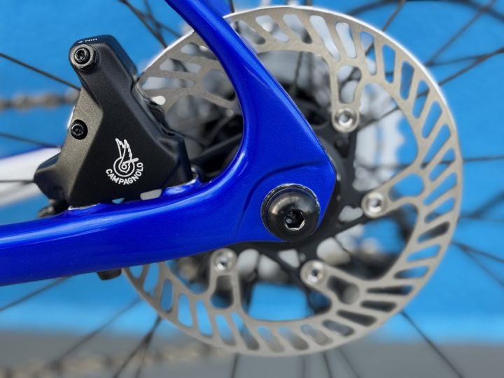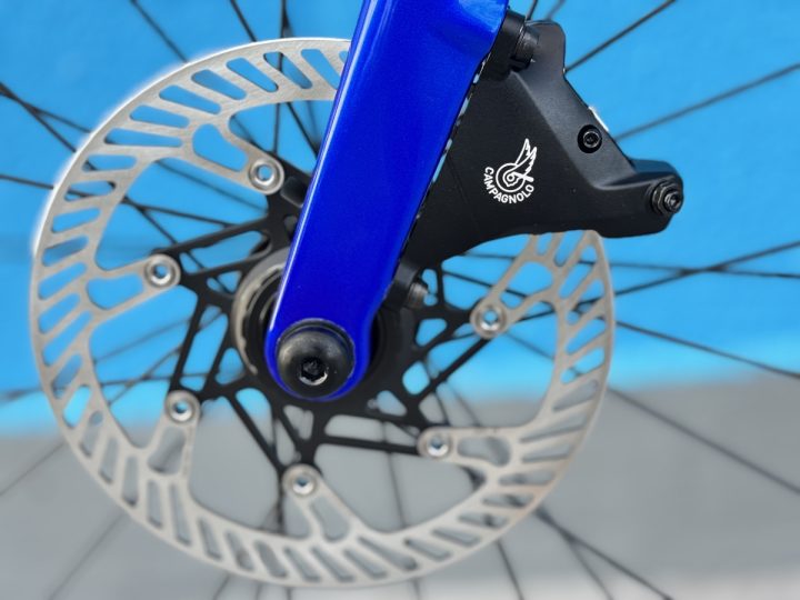 ローターはフロント160㎜、リア140㎜という定番の組み合わせ。