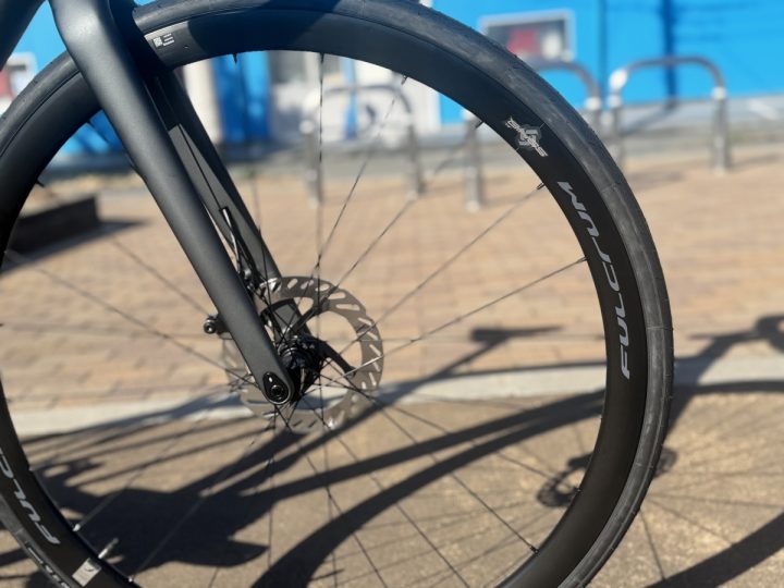 ホイールはFULCRUM SONIQ AL! 新製品ですね。アルミの可能性を追求し、品質・性能・価格のバランスに優れるモデルです。リムハイト33mmはやや高めでカッコいいです。リム内幅は23mmと流行りのワイド! そしてチューブレス化も可能!