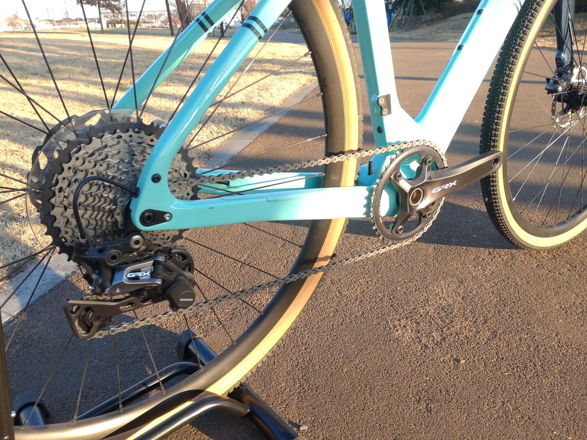 コンポーネントはシマノGRX RX810 機械式変速で、1×11速。