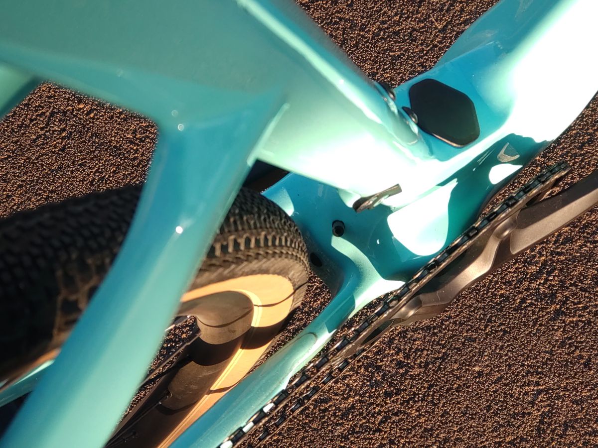 メーカー公称タイヤクリアランスは700Cの場合で42mm、650Bの場合で47mm。一世代前のフレームとしてはキチンと確保している感じです。