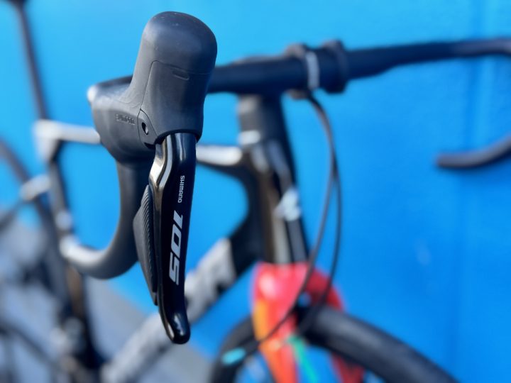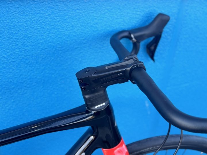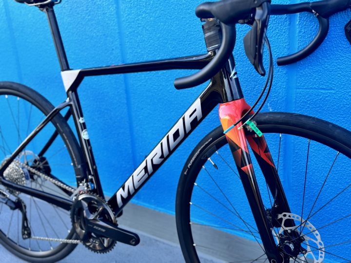 どこが訳ありかというと、すぐに気づいた方も多いかと思いますが、実はフォークのカラーとフレームのカラーが違っちゃってるんです。もちろん性能は問題ありません。軽量CF3カーボンフレームは、フラッグシップモデルとも同型デザインで、レースだけでなくチャレンジングな峠を含むロングライドでも登りはもちろん下りのハンドリングも楽しめます!