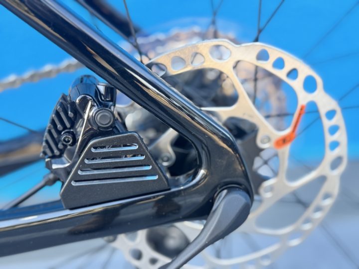 こちらはまだブレーキホースを繋いでない状態ですが、セミインテグレートケーブルデザインになっていて、なにもないみたいにスッキリになります。空力性能を最適化になってます!