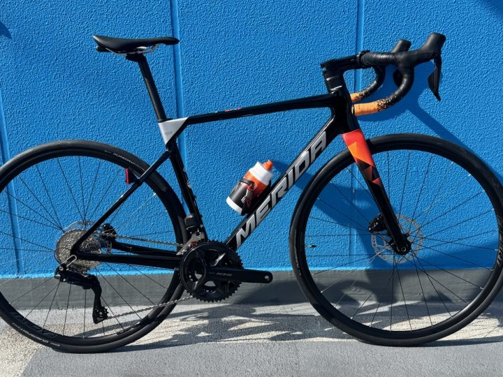シートポストはメリダカーボン! 軽いわけです。車重量は8.4㎏(実測)。