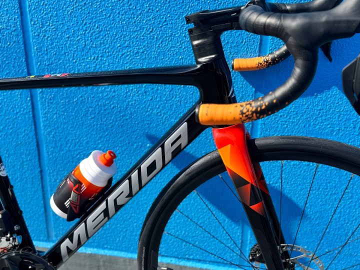 After↓ フロントフォークに合わせてオレンジのバーテープを巻き、オレンジのボトルを付けました。