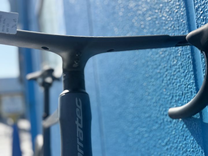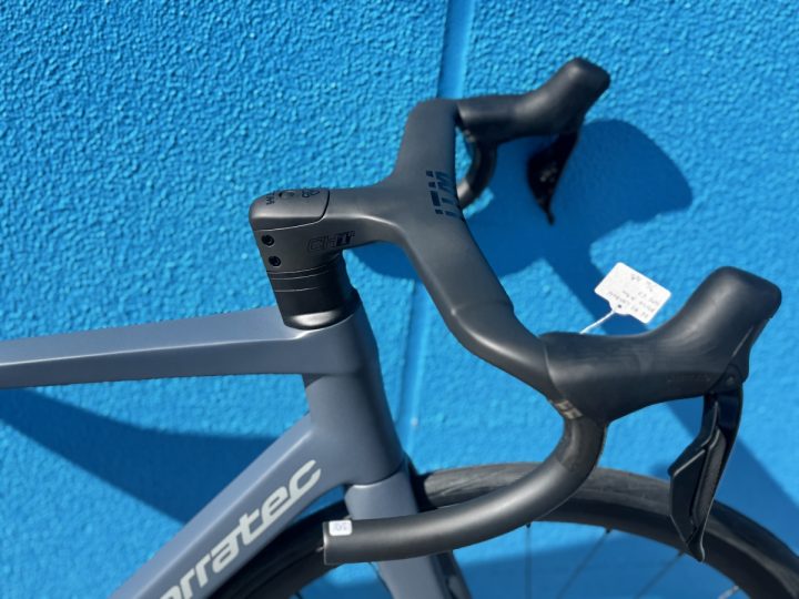 コスパ激高めです。シン・R.T.CARBONはワイヤ類がフル内装になりました。ちなみにこのステム一体型ハンドルは、通常¥38,500でアップグレード可能なもの(定価¥59,400)ですが、こちらは無料でアップグレードになってます(限定4台!)。