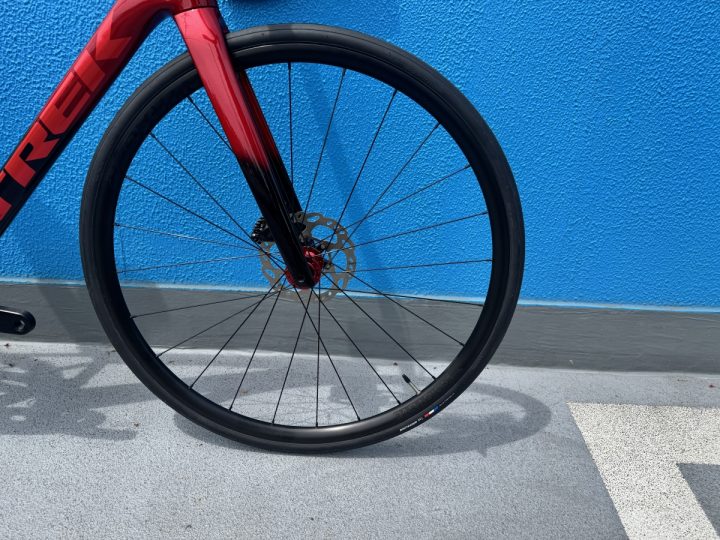 相性のいいBONTRAGERのホイールに、タイヤは転がりがよく安定もいい両立の700×28c!