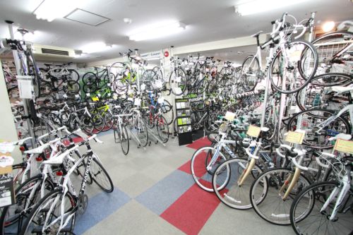 ロードバイクコーナーには人気車種を大量展示中! 多摩サイクリングロードを走る際には、是非Y's Road 府中多摩川店にお立ち寄りください!