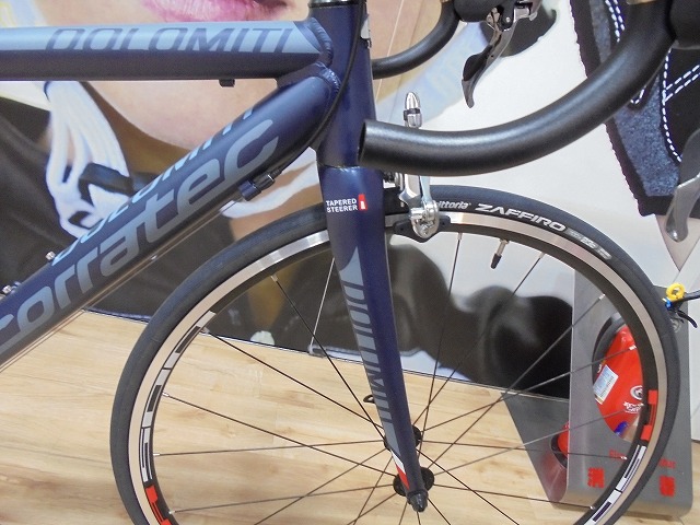 カーボンフォークは快適な乗り心地を提供してくれます。