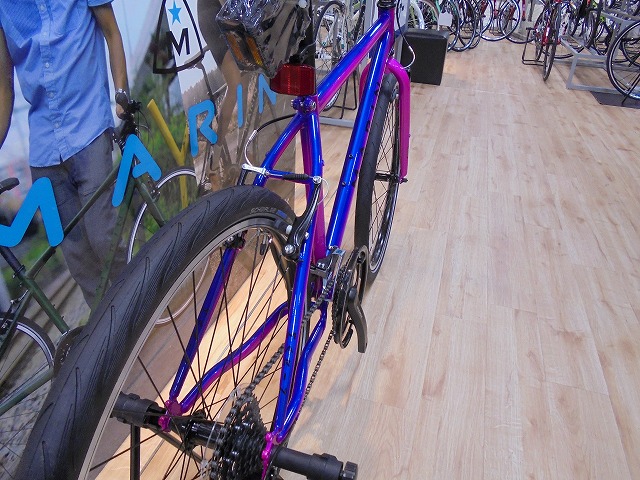 タイヤは26X1.5と一般的なクロスバイクの700X28Cにくらべ太く直径は小さいです。