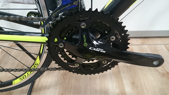 コンポーネントはシマノCLARISのミックスで3×8Sになっていますので、