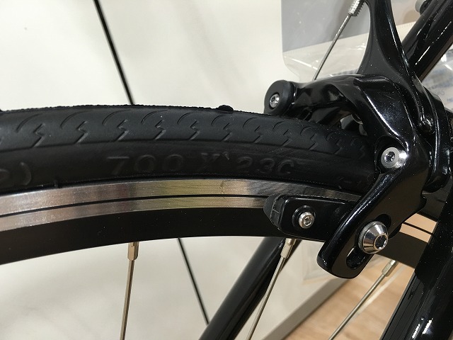 走りの軽さを左右するタイヤは700x23Cと、最近太くなりつつあるロードの700x25Cより細く