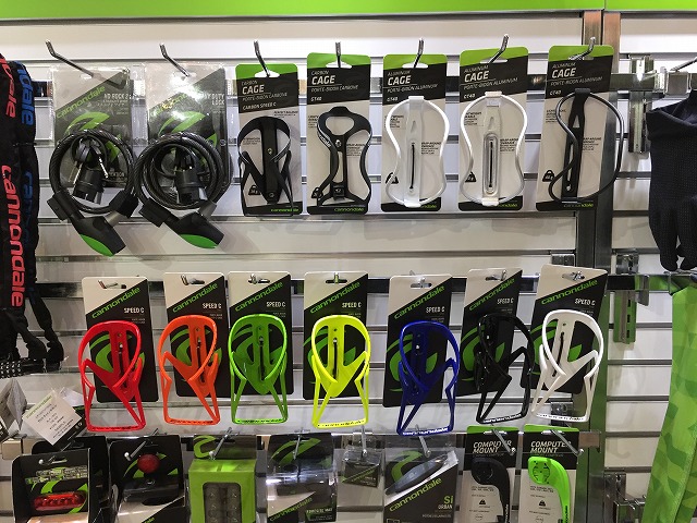 ボトルケージにはスピードCケージのカーボンモデルとGT50カーボンケージがラインナップに増え、従来のナイロン スピードCケージには新色が追加。