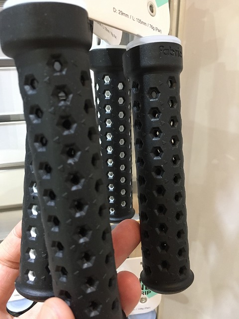 グリップではfabricらしい6角がくり抜かれたスタイリッシュなグリップや新しいバイカラーのバーテープもラインナップに増えています。