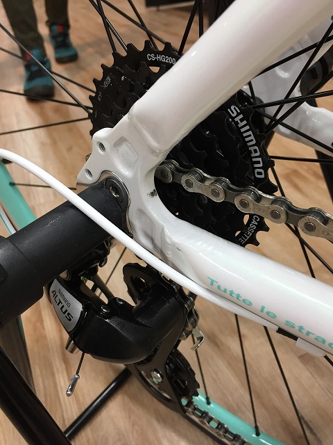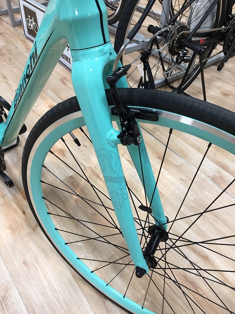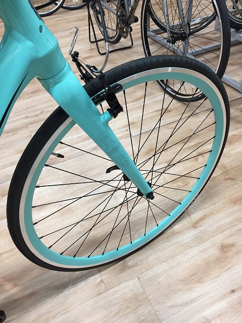 ホイールはリム面までチェレステ仕様として街乗りにもバッチリ映えます。