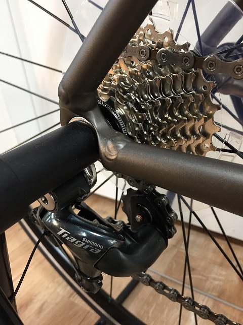 シートステーは薄く横扁平とする事で快適さを確保し、剛性と快適性を調整しています。