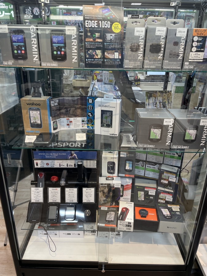 ワイズロード福岡天神店ではiGP SPORTのほかGARMIN、bryton、Wahooなどのサイクルコンピューターの取り扱いがあります。
