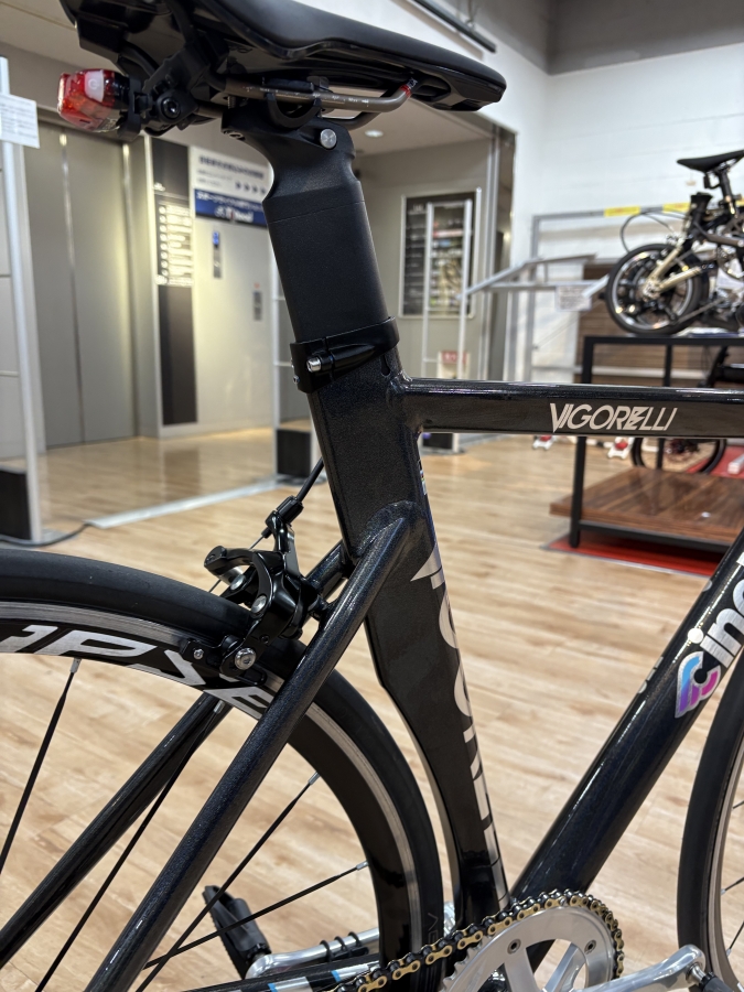 FUJIのTRACK ARCVからの乗り換えをご希望で、ロードにするかシングルスピードの上位モデルにするかをご検討でしたが、「シングルで峠を越える快感」に魅了されてしまい、今回のVIGORELLIをバラ完にてご依頼いただきました。