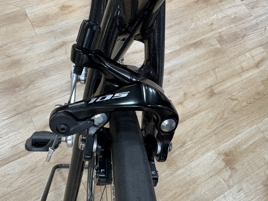 ブレーキキャリパーは制動力を最優先にSHIMANO105をアッセンブル