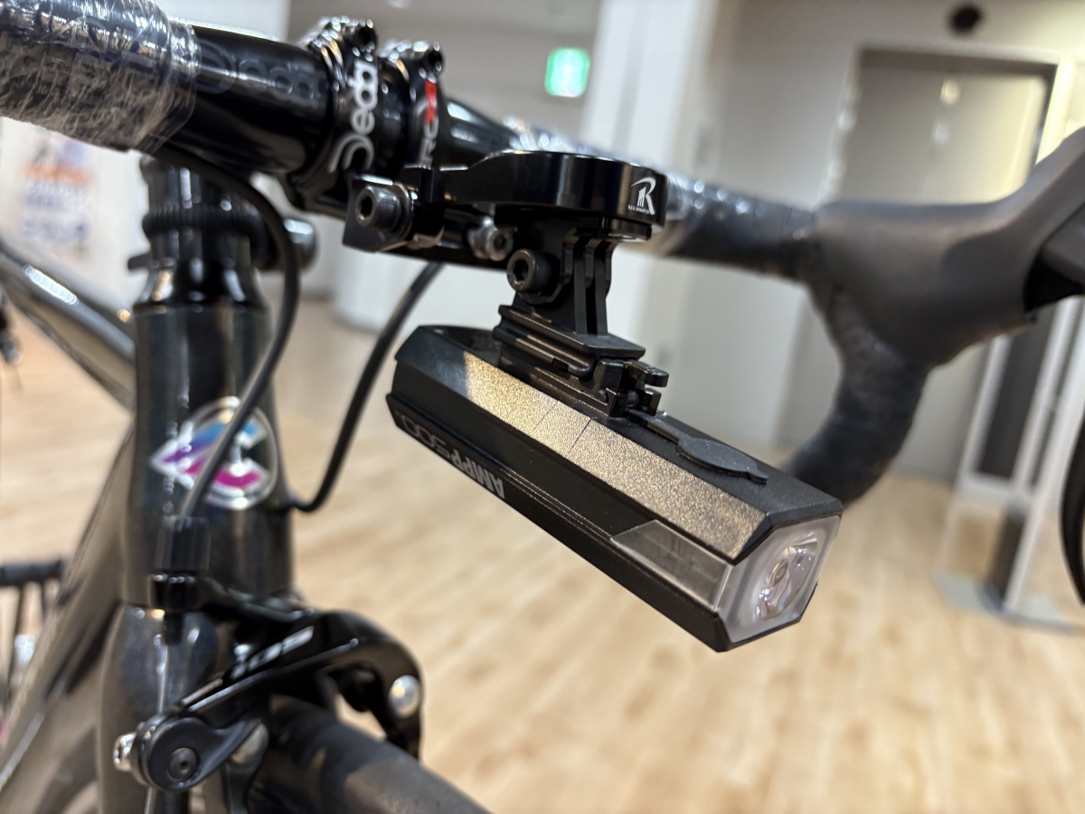 サイコンとライトはスタイリッシュの定番レックマウントでステム中央に全て配置。
