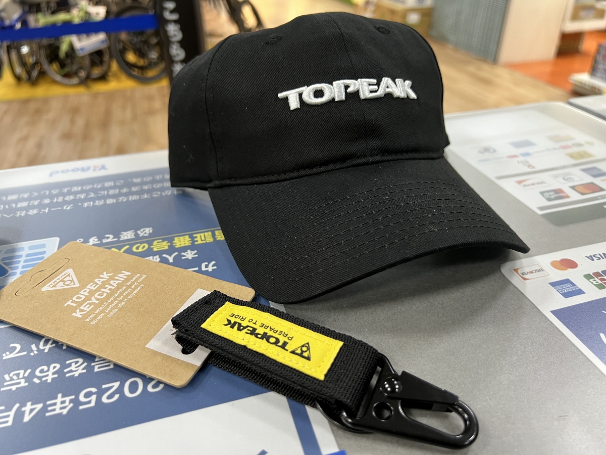 数量限定ではございますがトピーク製品を税込1万円以上お買い上げいただいた方にはキャップかキーホルダーをプレゼント!キャップは限定3個、キーホルダーは10数個と言った感じです。取り寄せ商品でもプレゼントの対象に致しますのでこの機会にぜひお願いします。ご来店お待ちしております。