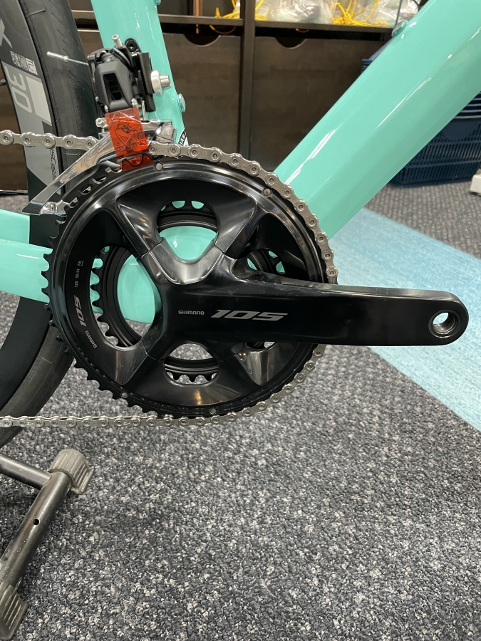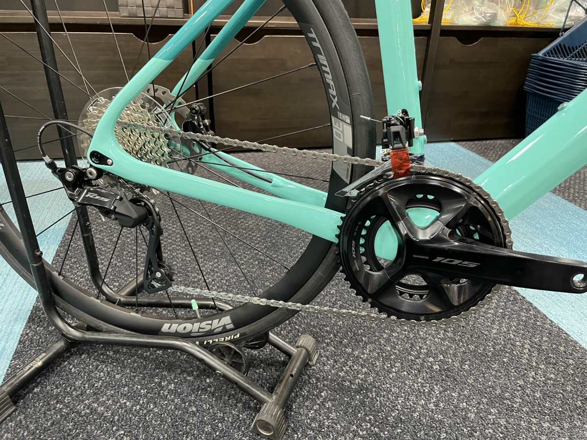 SHIMANOの機械式新型105を搭載し、油圧ディスクブレーキで2×12速の仕様となっております。
