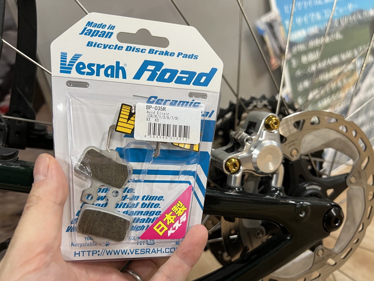 私が取り付けた種類ではありませんがシマノのロード互換のパッドでグラベルタイプという通常ラインナップにないフカヤさん別注の特別モデルを在庫中です!もちろんロードバイクでも使っていただいて問題ありません。ちょっとだけ特価になってるので宜しければ是非試してみて下さい。