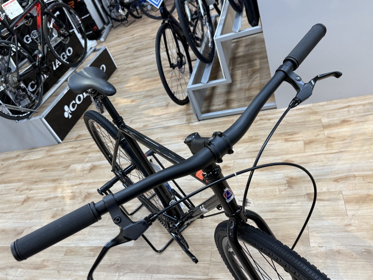 MTBのような幅広なハンドル・太めの38Cタイヤ。