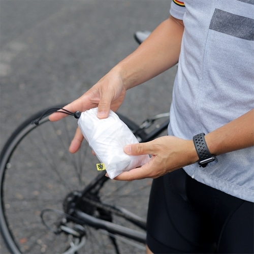 付属のポーチを利用すればコンパクトに畳むことができ、ジャージのバックポケットに収納することができます。