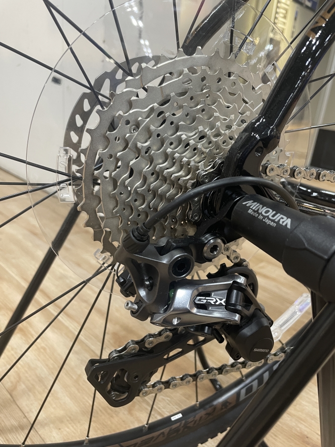 変速機はSHIMANOの変速用コンポーネントの11速GRXです。