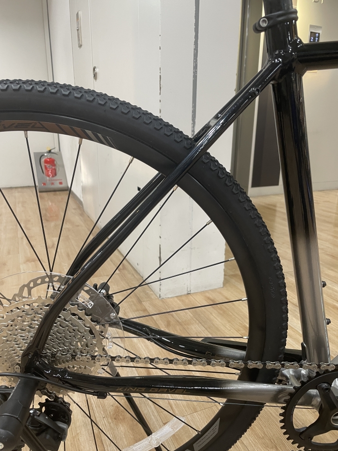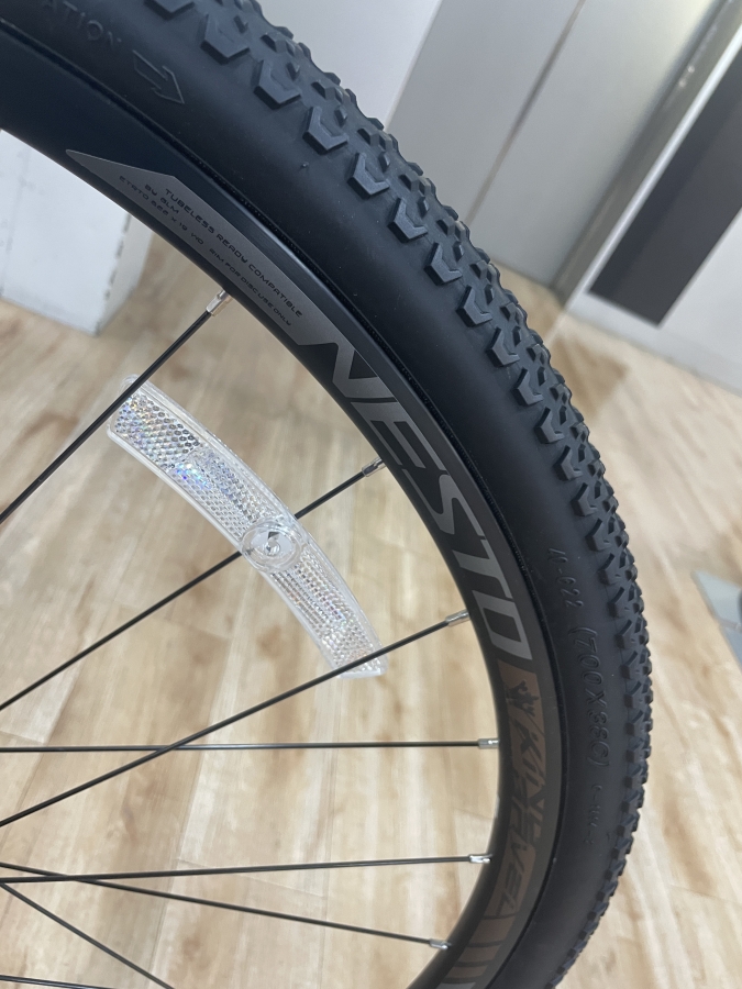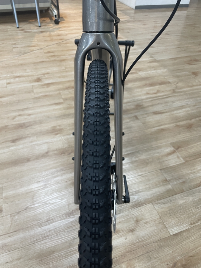 タイヤは純正で38Cです。もう一回り大きいタイヤも履けるかもしれません。