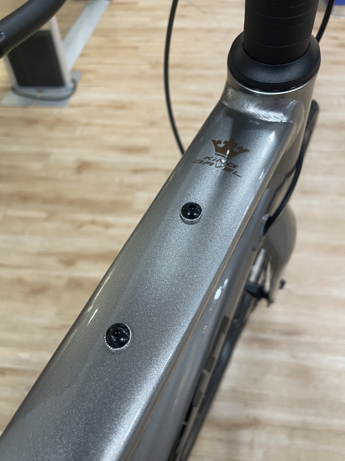 グラベルロードとしてキャリアやフェンダーを取り付けるためのダボ穴も多数あり拡張性抜群です。