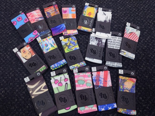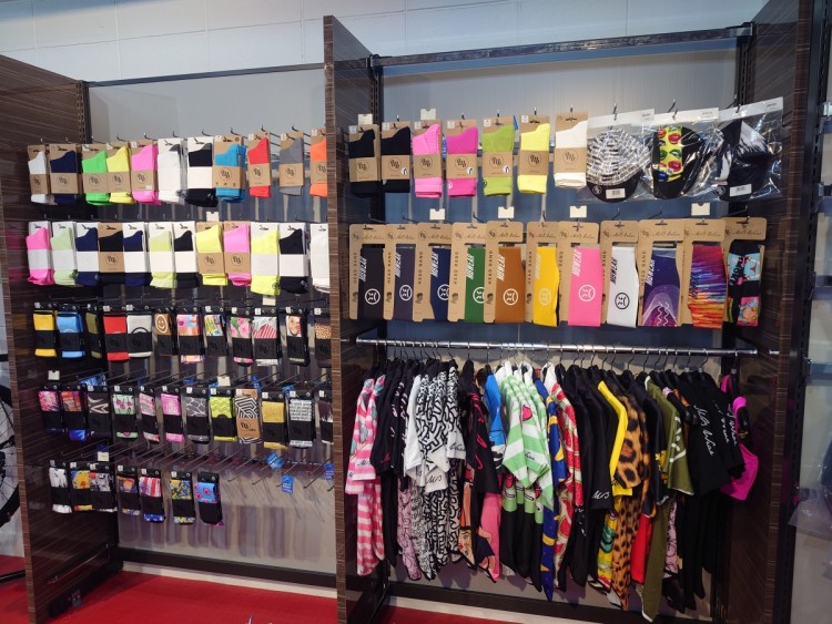 ソックス、ジャージ以外にもヘッドバンド、レイン用シューズカバー、エアロシューズカバー、キャップなども店頭に並びます!