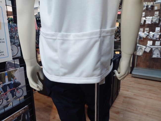 そこにサイクリングには必須のバックポケットが付いています。一般的なサイクルジャージと比べて大きなバックポケットなので収納性も◎
