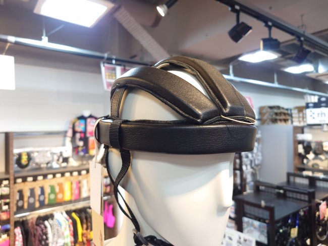 通常のヘルメットとは異なる、本革を使用したウレタンと衝撃吸収シートの2層構造のヘッドプロテクターです。