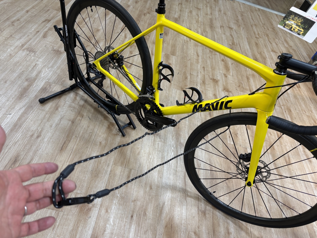 複数台を繋げてロックするのに凄く便利そうです!上手に重ねれば5台は楽勝で一緒にロックできそうです。
