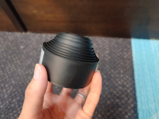 厚さ1.8㎜のうち、1.3㎜は熱膨張性マイクロカプセルを樹脂素材に練り込んで発泡させ軽量化を実現。