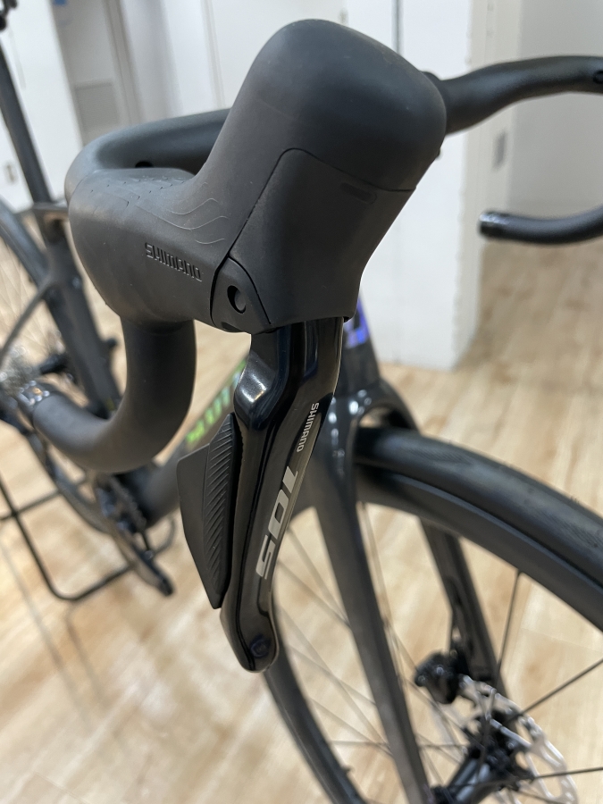 コンポーネントは105Di2です。セミワイヤレス電動で軽いタッチでスパスパ決まります。