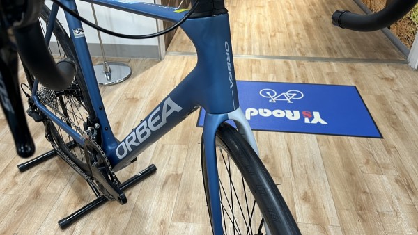 この車体の外観の大きな特徴の一つは、フォークの左右でカラーとデザインが異なり、右から見た時と左から見た時とで違った表情を見せてくれる、ORBEAならではのカラーリングです。