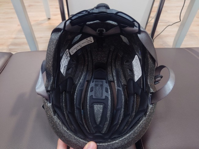 全体的にベンチレーションが配置され空気(風)がうまく通るように設計、また軽量化にも貢献しておりSG規格を取得しているヘルメットの中では世界最軽量とのこと!