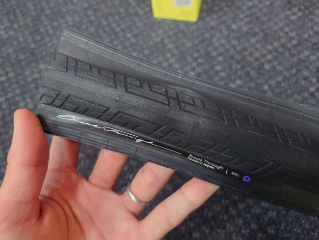 ホイールはシマノ、リムのRS。握力の弱い私は硬めのタイヤやチューブレスタイヤを付ける時は必ず他のスタッフに手伝ってもらうのですが、今回使用したブレイクスルーはタイヤレバーも使用することなく一人で簡単に装着出来ました!