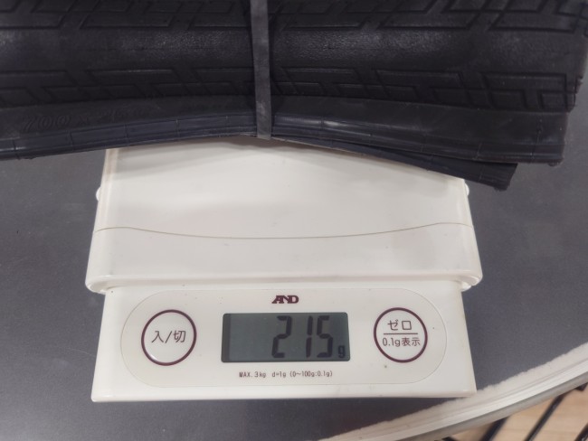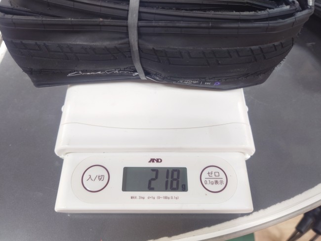 もともと付けていたタイヤ(700×25c)は1本で、約310gでしたので今回のタイヤ交換で約200gほど軽くなりました!
