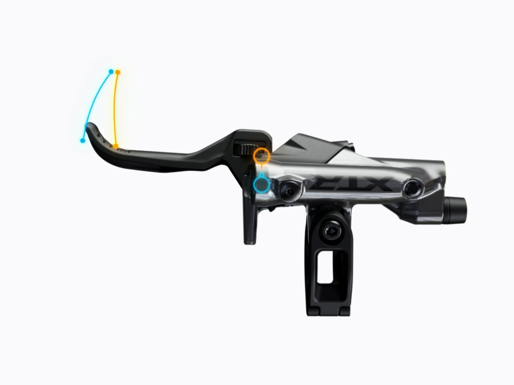 SHIMANO ERGO FLOWによる卓越したコントロール性能を発揮!より近くに配置されたピボット位置が指の曲線に自然にフィット!さらにレバー角度のみが従来に比べて上向き(表現が難しいです(笑))になったため下りの握り心地が更に向上しています。触った感じリターンのスプリングがかなりカッチリしていて触り心地はM〇VENを使った時の感動と同じものでした。ダウンカントリー向けにレバーはBL-M9220、キャリパーはBR-M9200も公式推奨の組み合わせなので制動力に物足りなさを感じるクロカンライダーにもオススメです。