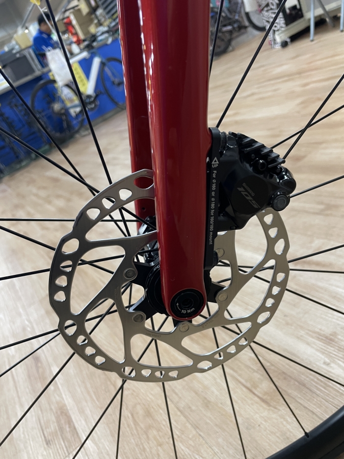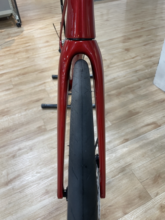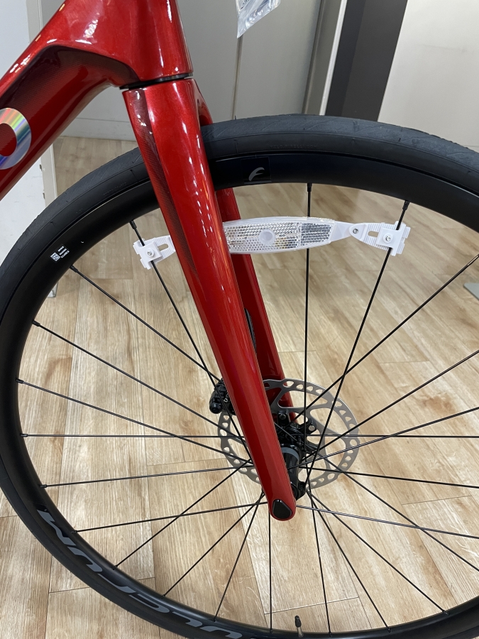 フォークは軽量ロードらしく細身のストレートフォークです。