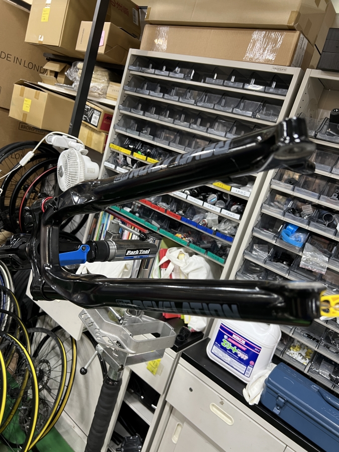ブレーキと一緒にというと変ですが車体も乗り換えています。友人から譲ってもらったKonaのProcess 153 CRになりました。以前から使用していたROCKSHOX Revelationも今回の乗せ換えにあたってエアスプリングシャフトを交換してストローク長を120mmから160mmに伸ばしています。