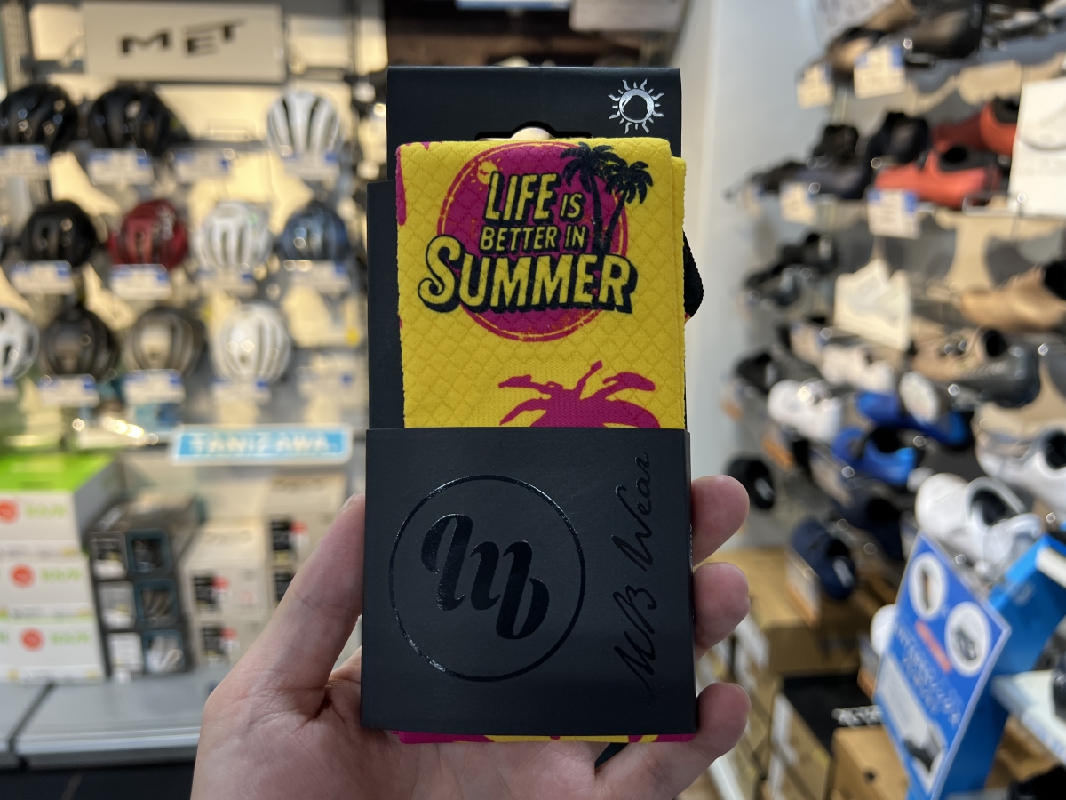 お次はMB WEARの 夏限定カラーソックス。Life is better in summer(夏は人生がもっと楽しくなる)。いい言葉です。店頭にもいくつかカラー違いが入荷していますのでチェックしてみて下さい。お値段は3,520円(税込)です。