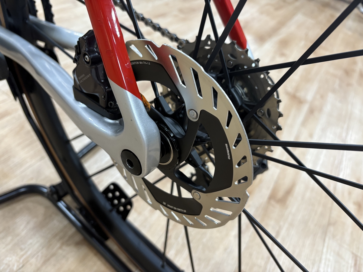 前回のカスタムでフロントだけデュラエースローターに変更しておりましたので、「せっかくホイールがカッコよくなるなら」と併せてリアもローターを変更しました。