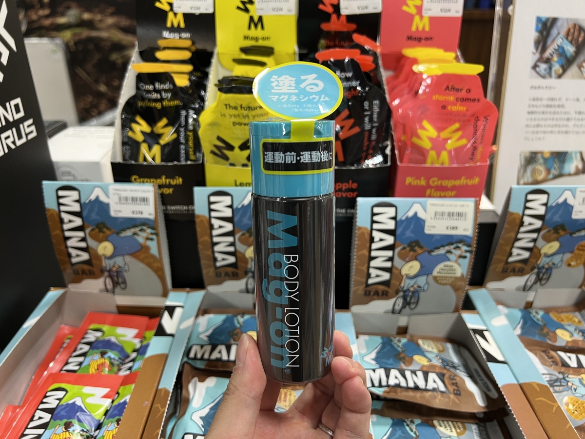 塗るマグネシウム、ということで経皮でマグネシウムが摂取可能な良い匂いのボディーローションです。水溶性マグネシウム、塩化マグネシウム、カンゾウ根エキス、 シャクヤク根エキス配合で筋肉トラブルの防止から肌のうるおいまで保ってくれる優れたボディーローションです。何日か朝晩の1日2回使用した感想ですが夕方あたりになると感じるふくらはぎや太ももの張りが薄くなった感じがします。ボディーローションを使うという習慣がなかったのですが普通に塗る行為がマッサージになっていてとても良いですね。レースやロングライド中に塗るのも効果的なようです。お値段は2,640円(税込)。