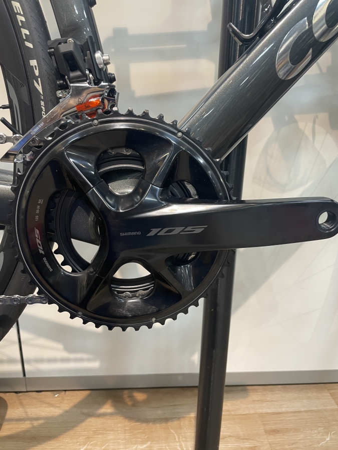 フロントのチェーンリングは50/34Tで、リアのスプロケットは11-34Tです。