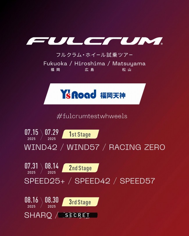 福岡天神店、広島店、松山店で同時開催していたFULCRUMホイール試乗ツアーはついに最終ステージを迎えました!