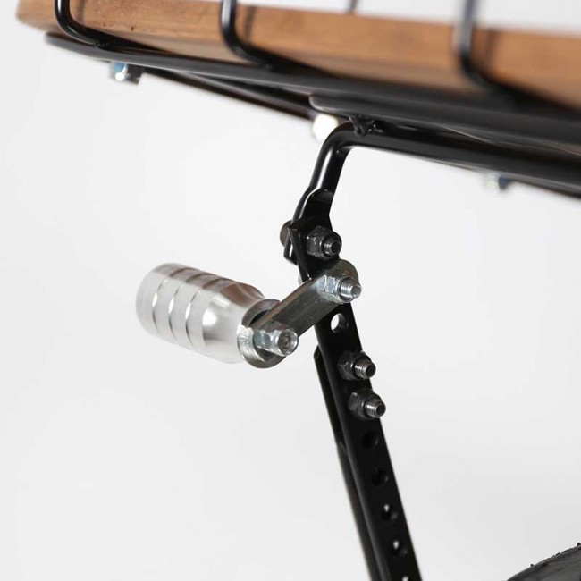 純正は1本足のセンタースタンドが付属します。今回のカスタムではカゴに荷物を載せることが前提だったのでダブルレッグスタンドに交換しました。